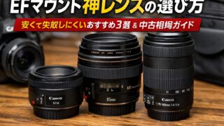 EF-SがAPS-C専用最適化で可能にした軽量・小型・安価な製品設計の変化を解説。EFとの差、像円とショートバックフォーカス、広角の小型化、EOS Kiss系の普及効果、メリットと限界、RF移行の位置付けまで整理。初心者導入の要点も網羅。